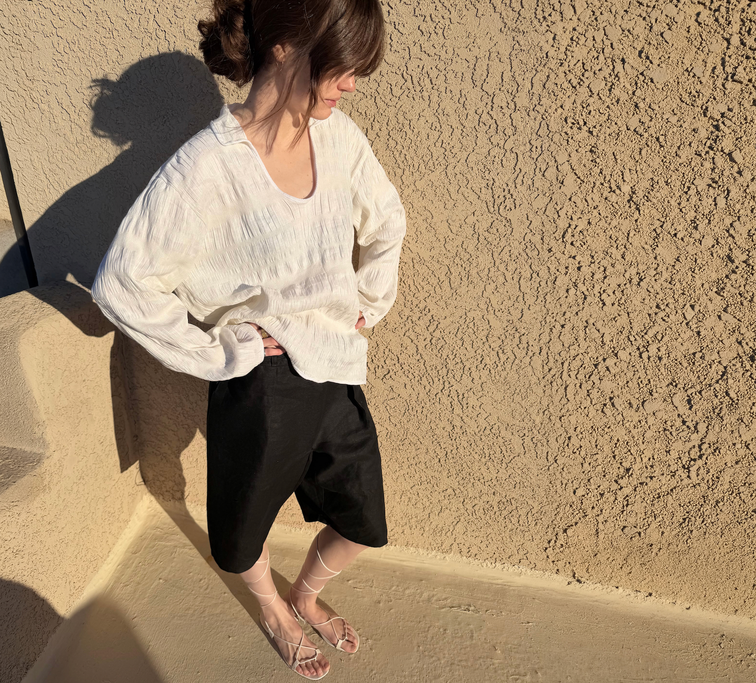 Textured summer popover & drawstring walking short
