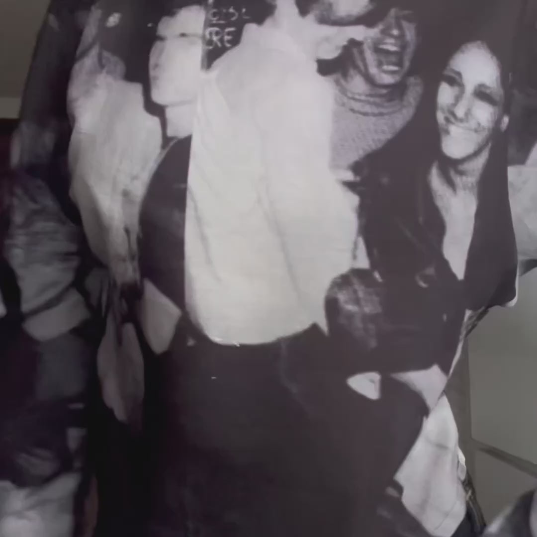 Black & Grey Photo Printed Silk Charmeuse, Boat Neck Dolman
